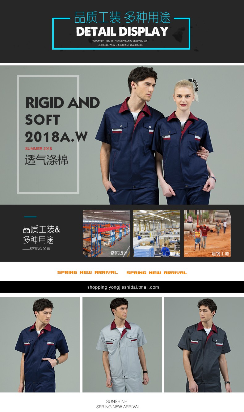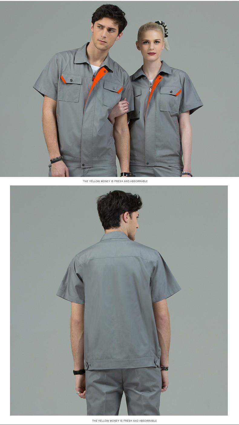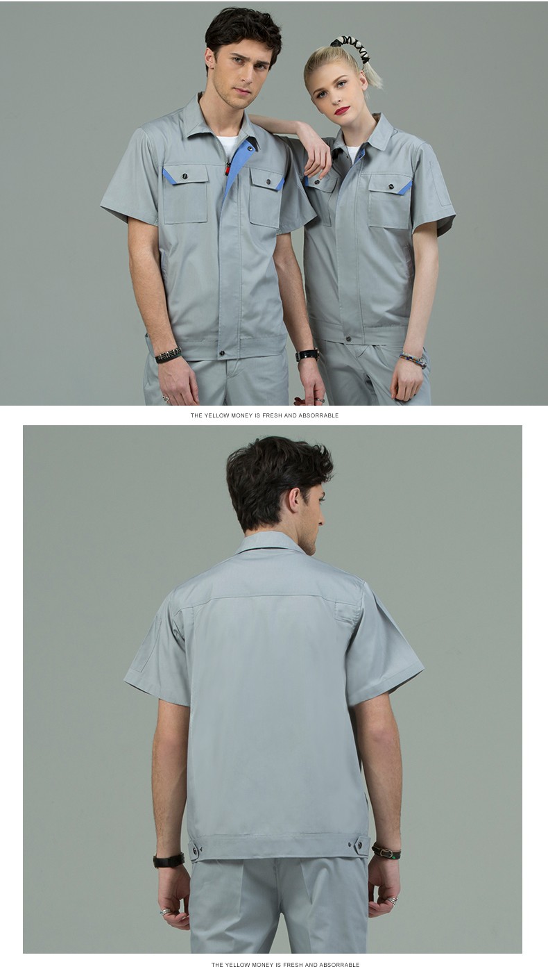 藏藍(lán)色加棗紅領(lǐng)短袖工作服,適用于物流運輸,建筑工地,工廠車間等工作環(huán)境