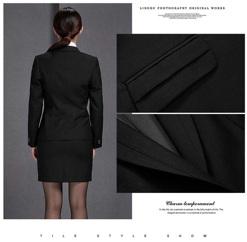 特 點(diǎn):時(shí)尚一??鄞钆浣?jīng)典黑色,雙疊層口袋,充滿年輕氣息,適合公司文員前臺(tái)等崗位穿著。